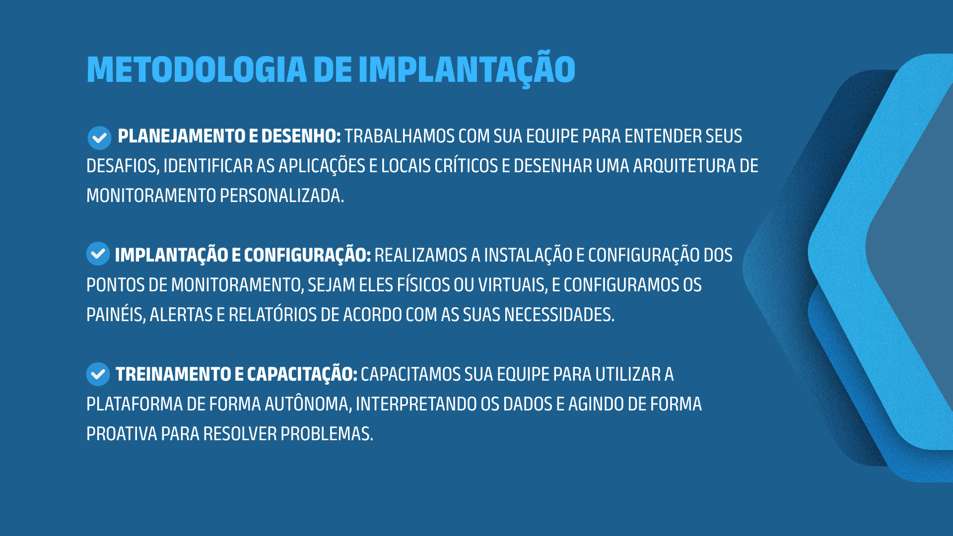 • Máxima Disponibilidade e Performance: Monitore sua rede em tempo real, identifique e solucione problemas de forma proativa e garanta a máxima disponibilidade e o melhor desempenho dos seus serviços.