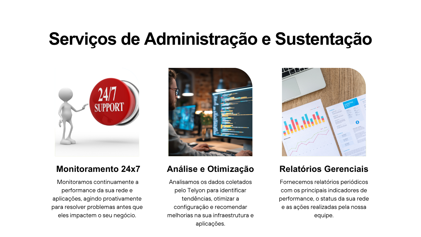 A Eleeva IT não é apenas uma fornecedora de tecnologia; somos um parceiro estratégico comprometido com o sucesso dos nossos clientes. Nossa experiência na implantação e administração de soluções de monitoramento de performance de rede, como o Telyon, nos permite oferecer um serviço de ponta a ponta que garante o máximo retorno sobre o investimento.